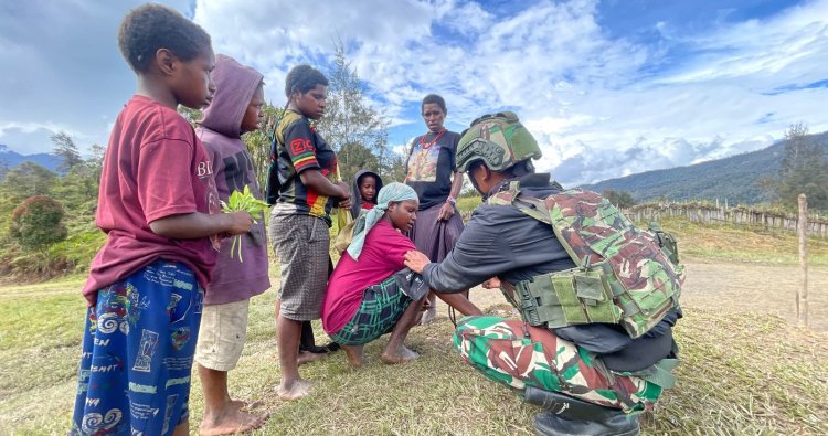 PUNCAK - Di tengah bentangan alam Papua Pegunungan yang memukau namun penuh tantangan, Pos Agengen dari Satuan Tugas (Satgas) Yonif 142/KJ tak pernah lelah menebar senyum kesehatan. Pada Sabtu (13/12/2025), semangat pengabdian mereka kembali membara melalui program AKSARA (Aksi Ksatria Sehat untuk Rakyat) yang digelar secara keliling di Distrik Yugumuak, Kabupaten Puncak Papua. Inisiatif mulia ini dirancang khusus untuk menjangkau warga yang tinggal di honai-honai, memastikan tak ada satu pun yang terlewatkan dari sentuhan pelayanan medis, meskipun jarak dan medan menjadi penghalang.