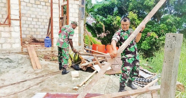 Jayapura – Dalam rangka meningkatkan kesejahteraan masyarakat dan mempererat kemanunggalan TNI dengan rakyat, tiga orang Babinsa Koramil 1701-02/Jayapura Utara yang dipimpin Serma Purba melaksanakan Karya Bakti membantu pembangunan rumah milik Ibu Aneke Burdam di Pasir Dua, Kelurahan Tanjung Ria, Distrik Jayapura Utara, Kota Jayapura, Jum'at (31/10/2025).