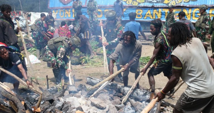 Tradisi bakar batu yang dihelat bersama ini bukan sekadar ritual kuliner, melainkan sebuah simbol kuat persaudaraan, kekompakan, dan rasa syukur mendalam atas kedamaian serta kebahagiaan Natal. Dari mulai persiapan hingga hidangan tersaji, personel Satgas dan warga Yigi bekerja bahu-membahu, berbagi tawa dan cerita, seolah menjadi satu keluarga besar.