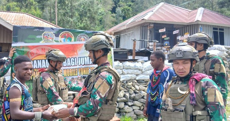 PUNCAK - Di bawah langit cerah Distrik Beoga, Kabupaten Puncak, Papua Tengah, pada Jumat (12/12/2025), Satgas Pamtas RI-PNG Mobile Yonif 732/Banau kembali menyentuh hati warga Kampung Milawak. Melalui program 'Banau Berbagi Jumat', para prajurit TNI dari Pos Beoga membagikan paket makanan dan susu secara cuma-cuma kepada ratusan penduduk, mencakup ibu-ibu, anak-anak, hingga lansia yang menjadi tulang punggung dan masa depan kampung.