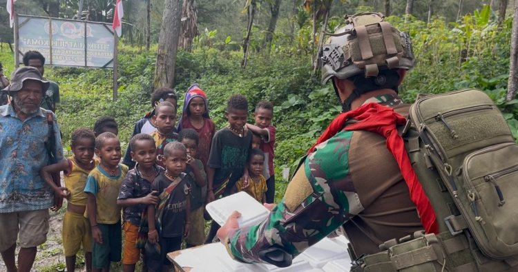 Di halaman-halaman honai dan jalan setapak desa, tawa anak-anak pecah menyambut kedatangan para prajurit. Sementara para ibu dan bapak kampung menyambut dengan senyum haru, menerima bingkisan yang diserahkan dengan penuh kehangatan. Tak ada jarak antara loreng dan noken, hanya rasa persaudaraan yang tumbuh di tanah pegunungan.