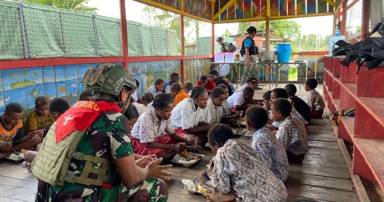 Mama Delila Kiwo, seorang orang tua murid yang turut hadir memantau kegiatan, mengungkapkan rasa harunya. Baginya, kehadiran TNI melalui layanan pemenuhan gizi ini memberikan rasa dihargai yang mendalam bagi keluarga di kampungnya.