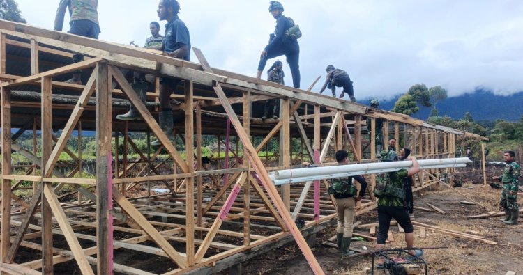 PAPUA - Di antara dinginnya udara pegunungan Wano Barat, kehangatan manusia justru terasa membara. Di sebuah kampung bernama Dugu-Dugu, suara palu dan tawa berpadu menjadi satu irama persaudaraan. Prajurit Satgas Yonif 408/Suhbrastha (Sbh) dan warga setempat bergandengan tangan membangun Pos Keamanan TNI, bukan sekadar untuk menjaga wilayah, tetapi juga menjaga asa dan kedamaian di Tanah Papua. Sabtu (1/11/2025).