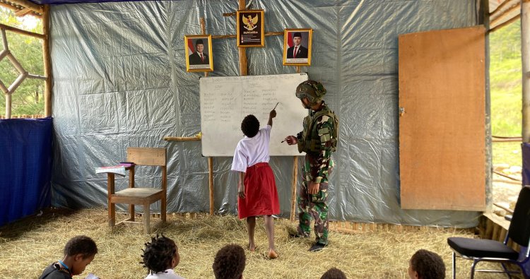 Meski fasilitas sekolah masih sederhana, semangat belajar anak-anak tak pernah surut. Mereka duduk rapi, mengangkat tangan tinggi-tinggi saat ditanya oleh sang prajurit-guru, dan tertawa lepas setiap kali berhasil menjawab dengan benar.