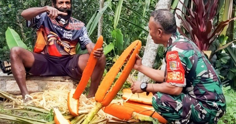 Dalam kesempatan tersebut, Serma Yakob Malalu berdialog dan bertukar pikiran dengan warga yang baru saja melaksanakan panen buah merah. Buah merah sendiri merupakan salah satu komoditas unggulan khas Papua yang memiliki nilai ekonomi tinggi serta manfaat kesehatan yang besar. Babinsa menyampaikan apresiasi atas kerja keras dan semangat kebersamaan masyarakat dalam mengelola kebun buah merah secara mandiri.