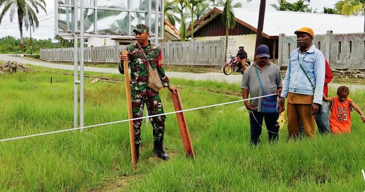 Keerom – Dalam rangka mendukung pemberdayaan ekonomi masyarakat dan peningkatan pelayanan kebutuhan dasar warga desa, Babinsa Koramil 1701-04/Arso, Sertu Satria, melaksanakan pendampingan survei dan pengukuran lahan pembangunan fasilitas Koperasi Merah Putih di Kampung Workwana, Distrik Arso, Kabupaten Keerom, Selasa (11/11/2025).