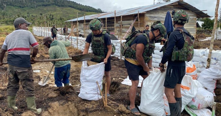 Dengan alat seadanya dan tenaga yang tulus, warga bersama TNI mengangkat rangka atap, menyiapkan bahan bangunan, dan saling bergantian mengisi peran. Tak ada jarak antara loreng dan rakyat hanya tawa, kerja keras, dan tekad untuk membangun Papua yang damai.