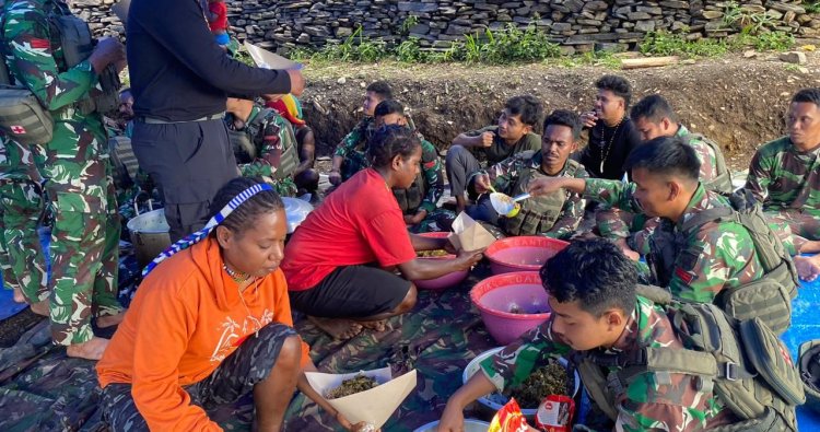 PUNCAK JAYA - Di tengah sejuknya udara pegunungan dan hamparan hijau yang menenangkan, Jumat (31/10/2025) menjadi saksi keindahan harmoni antara prajurit Satgas Yonif 613/Raja Alam dan masyarakat Papua. Tanpa sekat dan tanpa perbedaan, mereka duduk bersama, menikmati santap siang di atas daun pisang, diselimuti tawa dan keakraban.