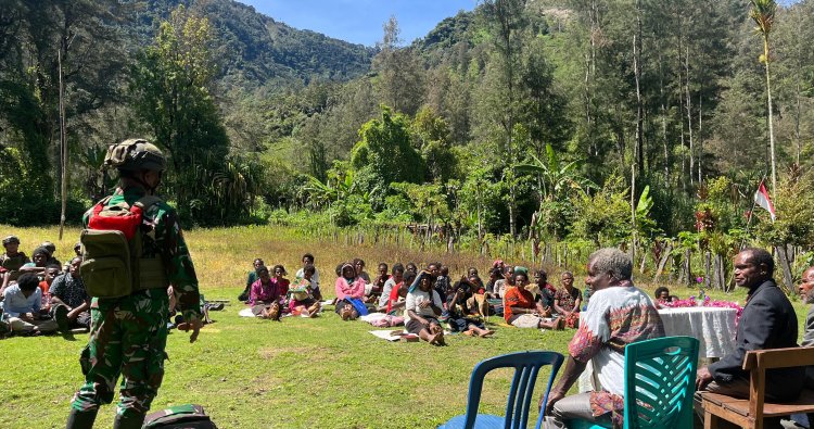 PUNCAK - Di tengah kesejukan pegunungan Papua, prajurit Satgas Pamtas RI-PNG Yonif 732/Banau Pos Julukoma menorehkan kisah kemanunggalan yang hangat bersama masyarakat melalui kegiatan Ibadah Minggu bersama dan program “Sehati” (Satgas Edukasi dan Himbauan Aktif Tiap Minggu) di Kampung Julukoma, Kabupaten Puncak, Minggu (26/10/2025).