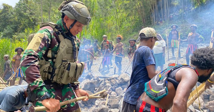 PUNCAK - Suasana haru dan penuh kehangatan menyelimuti peresmian Gereja Kampung Jampul di Distrik Beoga, Kabupaten Puncak, Papua Tengah, pada Minggu, (21/12/2025). Kehadiran rumah ibadah baru ini bukan sekadar bangunan, melainkan denyut nadi spiritual dan sosial bagi masyarakat setempat, yang diresmikan langsung oleh Pos Jampul Satgas Pamtas RI–PNG Mobile Yonif 732/Banau. Momen bersejarah ini semakin istimewa dengan penyelenggaraan tradisi adat Bakar Batu, sebuah ritual sakral yang merefleksikan eratnya ikatan persaudaraan antara TNI dan warga Kampung Jampul.