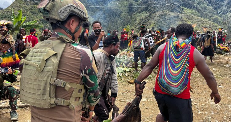 INTAN JAYA - Suasana khusyuk dan penuh kehangatan menyelimuti peresmian Gereja GKII Imanuel Holomama di Distrik Sugapa, Kabupaten Intan Jaya, Papua Tengah, pada Minggu, (28/12/2025). Momen sakral ini menjadi lebih istimewa dengan kehadiran Satgas Pamtas RI–PNG Mobile Yonif 500/Sikatan yang turut ambil bagian dalam ibadah bersama serta prosesi adat bakar batu, sebuah simbol eratnya persaudaraan antara TNI, pemerintah daerah, dan seluruh elemen masyarakat.