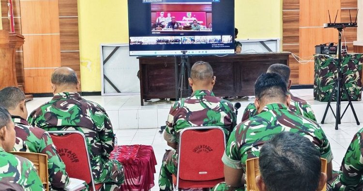 Satuan Kodim 1701/Jayapura, pengarahan virtual tersebut diikuti oleh Kasdim 1701/Jayapura, Letkol Arm Mustafa Lara, S.T., M.IP., bersama para perwira staf dan prajurit Kodim 1701/Jayapura di Aula Makodim. Kegiatan turut diikuti secara serempak dari masing-masing Koramil jajaran Kodim 1701/Jayapura.