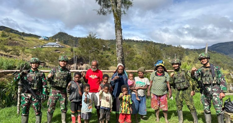 Lebih dari sekadar pemberian cinderamata, para prajurit dengan hangat mendatangi satu per satu honai warga, tawa dan sapa ramah menjadi jembatan keakraban yang tak ternilai. Interaksi dari rumah ke rumah ini menciptakan potret kedekatan yang tulus antara aparat negara dan masyarakat di pegunungan Papua yang terpencil.