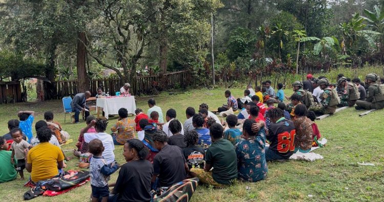 PUNCAK - Di tengah hamparan keindahan alam Puncak, Papua Tengah, sebuah momen kehangatan terjalin pada Minggu (7/12/2025). Personel Satuan Tugas Pengamanan Perbatasan (Satgas Pamtas) RI-PNG Yonif 732/Banau dari Pos Julukoma tidak hanya hadir sebagai penjaga kedaulatan, namun juga sebagai saudara yang berbagi dalam kebersamaan spiritual bersama warga Kampung Julukoma, Distrik Beoga.