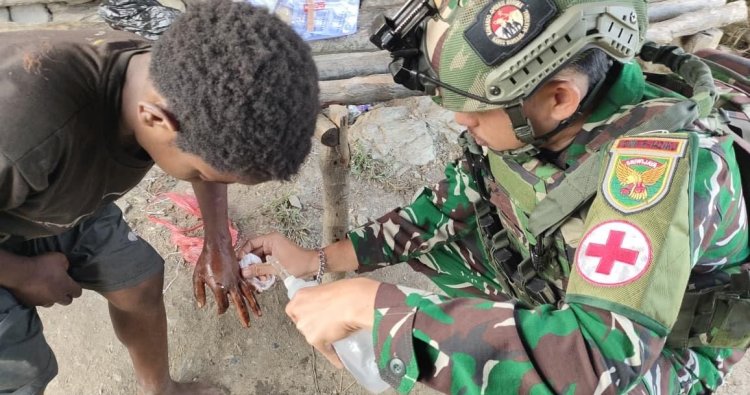 PUNCAK - Kabut tebal yang menyelimuti pegunungan Distrik Sinak, Kabupaten Puncak, tak menghalangi langkah tulus para prajurit Satgas Yonif 142/Ksatria Jaya. Di bawah pimpinan Dpp Sertu Gusri, personel Pos Pintu Jawa menggelar pelayanan kesehatan keliling bagi warga sekitar pos, membawa semangat kemanusiaan di tengah keterbatasan fasilitas medis.