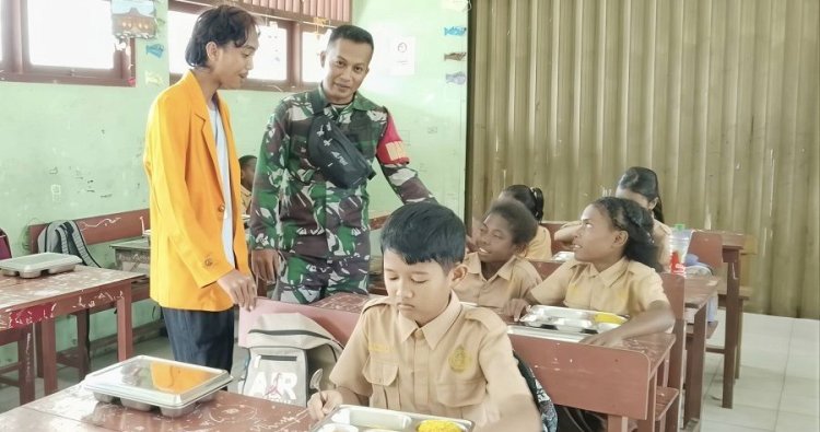 Sementara itu, Babinsa Koramil 1701-02/Jayapura Utara, Serma Marvin bersama Serka Priyadi, melaksanakan pendampingan Program Pemberian Makan Bergizi di SD Kartika yang berlokasi di Jalan Diponegoro, Kelurahan Gurabesi, Distrik Jayapura Utara, Kota Jayapura. Pada kegiatan tersebut, sebanyak 3.691 pelajar menerima manfaat dari program PMB. Kehadiran Babinsa di lokasi turut memastikan proses pendistribusian makanan bergizi berjalan dengan tertib dan sesuai sasaran.