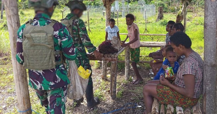 YAHUKIMO - Di tengah rutinitas menjaga perbatasan Negara Kesatuan Republik Indonesia, prajurit Satgas Pamtas RI-PNG Mobile Yonif 1 Marinir Pos Keikey menunjukkan sisi humanisnya melalui kegiatan Komunikasi Sosial (Komsos) dengan warga Kampung Bruto, Kabupaten Yahukimo, Papua Pegunungan, Sabtu (25/10/2025).