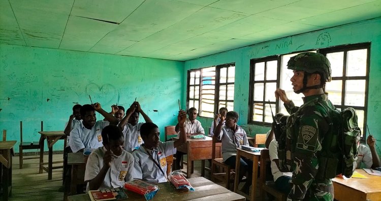 PUNCAK - Di tengah kabut tebal yang menyelimuti pegunungan dan dinginnya udara Distrik Sinak, semangat pengabdian para prajurit Satgas Yonif 142/Ksatria Jaya justru menyala hangat. Melalui program pendidikan bertajuk “Ksatria Cerdas”, para prajurit TNI menjadi guru sekaligus sahabat bagi siswa-siswi SMP Negeri Sinak, Kabupaten Puncak, Papua, pada Rabu (5/11/2025).