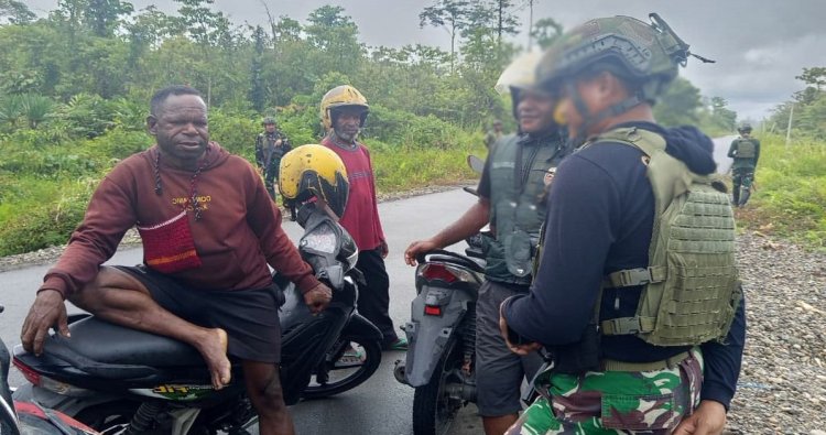 YAHUKIMO - Dalam suasana penuh keakraban, prajurit Pos Marinir Camar Satgas Pamtas RI-PNG Mobile Yonif 1 Marinir melaksanakan patroli keamanan sekaligus komunikasi sosial (Komsos) bersama warga Kampung Tomon, Distrik Dekai, Kabupaten Yahukimo. Kegiatan ini menjadi bukti nyata bahwa menjaga keamanan tidak harus selalu kaku, tetapi bisa dilakukan dengan sentuhan humanis dan penuh kepedulian.