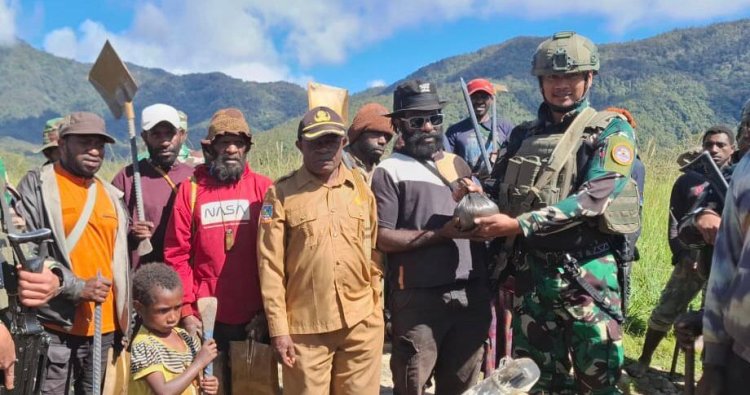 PANIAI - Di tengah keheningan pegunungan Paniai, Distrik Obano, Papua Tengah, riuh rendah suara kegembiraan membahana. Rombongan Satgas Pamtas RI–PNG 2025 Yonif 4 Marinir datang tak hanya membawa misi penjagaan, tetapi juga uluran tangan penuh kepedulian. Melalui program 'Bakti Sosial Peduli Masyarakat Pedalaman Papua', para prajurit TNI Angkatan Laut ini membagikan kebahagiaan dalam bentuk kebutuhan pokok, alat pertanian, dan hewan ternak babi kepada warga setempat pada Selasa (11/11/2025).