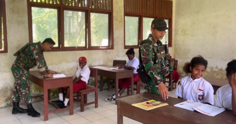 MAYBRAT - Di tengah keterbatasan tenaga pengajar, semangat pendidikan di ujung negeri kembali bergelora. Pada Senin, (12/1/2026), wajah-wajah ceria siswa SD Fuog di Kabupaten Maybrat, Papua Barat Daya, disambut bukan hanya oleh guru-guru mereka, melainkan juga oleh para prajurit gagah berani dari Satgas Pamtas RI–PNG Mobile Yonif 10 Marinir/SBY. Kehadiran tak terduga ini sontak mengubah suasana hari pertama masuk sekolah menjadi momen penuh kehangatan dan antusiasme.