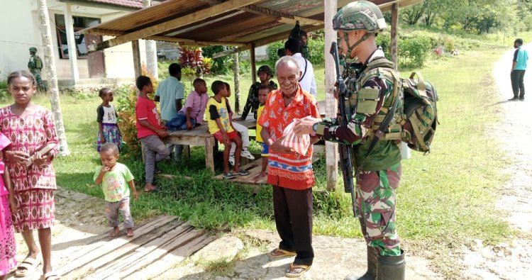 Kegiatan yang dilakukan di sela ibadah bersama warga ini berlangsung penuh kehangatan. Setelah doa dan puji-pujian bergema di gereja kampung, para prajurit berbaret ungu itu menyapa warga satu per satu sambil menyerahkan paket sembako berisi beras, gula, minyak goreng, serta kebutuhan pokok lainnya. Senyum dan tawa kecil pun menyelimuti halaman gereja, menghadirkan suasana kekeluargaan yang tulus di tengah masyarakat perbatasan.
