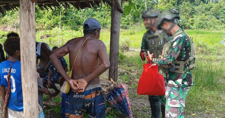 YAHUKIMO - Di pelosok Kampung Bruto, Distrik Dekai, Kabupaten Yahukimo, Papua Pegunungan, semangat kebersamaan terasa hangat pada Jumat, (5/12/2025). Personel Satgas Pamtas RI-PNG Mobile Yonif 1 Marinir tidak hanya hadir menjaga perbatasan, namun juga merajut tali silaturahmi melalui kegiatan Komunikasi Sosial (Komsos) yang berujung pada pembagian sembako. Inisiatif ini disambut penuh syukur oleh warga, yang merasakan langsung perhatian dan dukungan dari prajurit TNI.