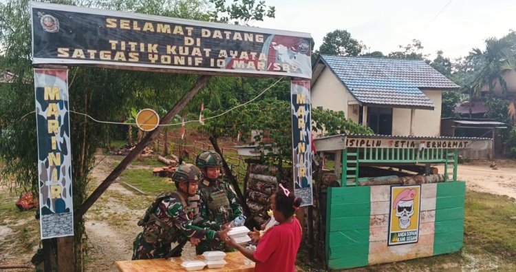 Dari anak-anak hingga para tetua, warga Kampung Ayata antusias mendatangi Pos Satgas. Di sana, para prajurit Marinir menyambut dengan ramah, menyajikan hidangan hangat yang menciptakan suasana kekeluargaan yang erat. Momen sederhana ini, di tengah kehidupan perbatasan yang penuh tantangan, terasa begitu berharga.