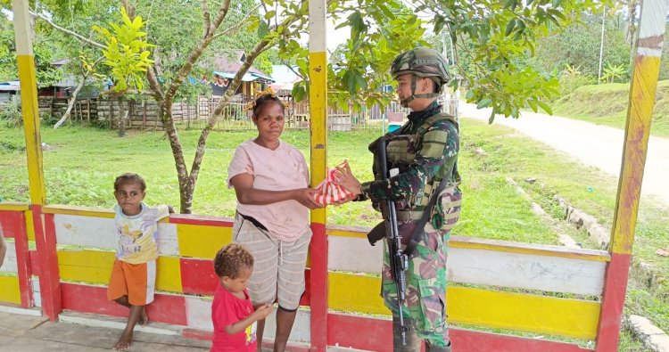 MAYBRAT - Di tengah hiruk pikuk tugas pengamanan perbatasan, prajurit Marinir dari Satgas Pamtas RI–PNG Mobile Yonif 10/SBY menyisihkan waktu untuk menyentuh hati warga. Pada Minggu (4/1/2026), usai khidmatnya ibadah Minggu, suasana hangat menyelimuti Kampung Kamat, Kabupaten Maybrat, Papua Barat Daya. Bukan dengan senjata, namun dengan bingkisan sembako, para prajurit menunjukkan sisi humanis mereka.