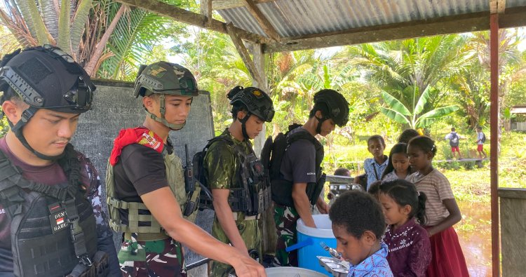 ASMAT - Di tepian rawa yang tenang di Distrik Sawa Erma, tawa anak-anak kembali menggema. Prajurit Satgas Pamtas Mobile Yonif 733/Masariku hadir bukan membawa senjata, melainkan kasih dan kepedulian melalui program “Masariku Peduli Gizi” yang digelar di SD Rimba YPPK Yan Smith Mumugu 2, Kabupaten Asmat, Kamis (23/10/2025).