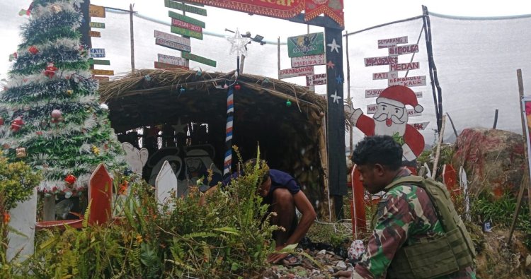 NDUGA - Di tengah keheningan pegunungan Papua Pegunungan, sebuah kisah hangat tentang persatuan terukir di Kampung Yigi, Kabupaten Nduga. Menyambut sukacita Natal 2025, prajurit TNI dari Satgas Yonif 400/Banteng Raiders Pos Yigi tak sendiri. Mereka bergandengan tangan dengan masyarakat setempat, bahu-membahu membangun dan menghias pohon Natal, sebuah simbol harapan yang menjulang tinggi di tanah para leluhur.