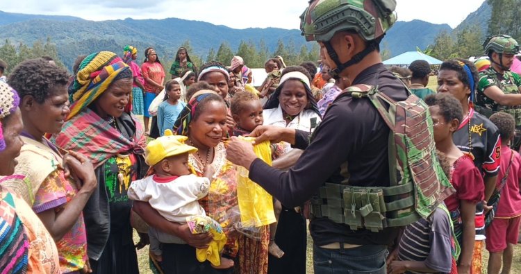 Usai ibadah yang mengharukan, Danpos TK/Pogapa, Kapten Inf Kresna Cakra Wijaya, S.Tr.(Han), memimpin langsung kegiatan bakti sosial. Satgas dengan sigap menyalurkan 30 paket makanan siap saji dan 35 pasang baju layak pakai kepada warga. Bantuan ini dipilih dengan cermat, disesuaikan dengan kondisi riil di lapangan, di mana akses logistik harian kerap terputus akibat tantangan geografis dan cuaca ekstrem.