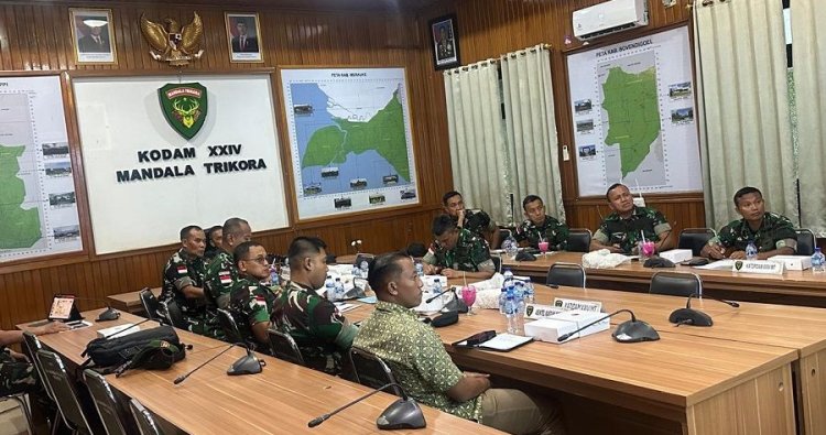 Rapat ini turut dihadiri oleh Pejabat Utama (PJU) Kodam XXIV/Mandala Trikora dan para Asisten Kasdam, sebagai wujud sinergi dan komitmen bersama dalam mendukung kebijakan pimpinan Kodam XXIV/Mandala Trikora.