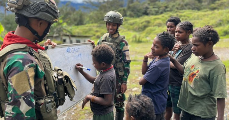 PUNCAK - Di tengah keterbatasan akses pendidikan di pedalaman Papua, prajurit Satgas Pamtas RI-PNG Yonif 732/Banau Pos Wangbe menyalakan semangat belajar warga Kampung Ulipiah, Distrik Wangbe, melalui program inovatif bertajuk “Papua Melek”.
