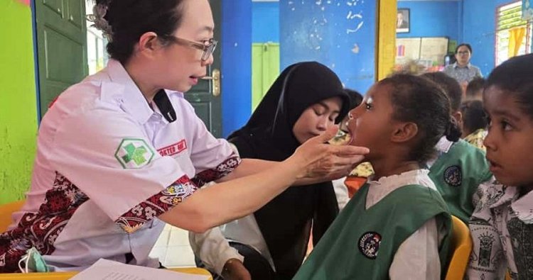 Selain penyuluhan, kegiatan ini juga diisi dengan pemeriksaan gigi gratis bagi seluruh murid TK Kartika VI-9. Pemeriksaan dilakukan langsung oleh Drg. Lili Raneallo bersama tim kesehatan dari Puskesmas Mopah Baru. Anak-anak tampak antusias dan berani mengikuti pemeriksaan gigi.