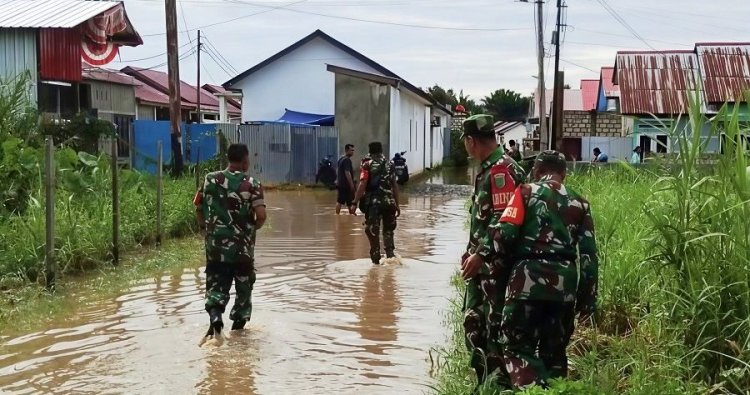 Sentani – Pasca hujan lebat yang mengguyur wilayah Sentani sejak Rabu malam, tujuh orang Babinsa Koramil 1701-01/Sentani yang dipimpin Pelda Rohmad Abadi turun langsung melaksanakan monitoring di sejumlah lokasi terdampak banjir. Langkah ini dilakukan untuk memastikan kondisi masyarakat tetap aman sekaligus mengantisipasi potensi dampak lanjutan akibat curah hujan yang tinggi. Kamis (20/11/2025)