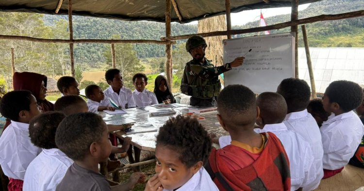 LANNY JAYA - Di tengah dinginnya pegunungan Papua, sebuah gubuk beratap terpal di Kampung Wamitu, Distrik Goa Balim, Kabupaten Lanny Jaya, Papua Pegunungan kini tak lagi sunyi. Ia telah bertransformasi menjadi mercusuar harapan, ruang belajar darurat yang dirintis oleh prajurit Satgas Yonif 408/Sbh. Kehadiran mereka bukan hanya untuk menjaga keamanan, namun juga untuk mengisi kekosongan pendidikan yang telah lama merundung anak-anak Wamitu. Rabu (10/12/2025).