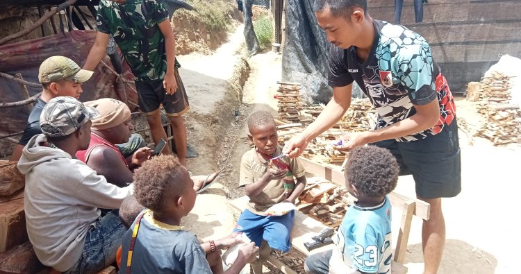 INTAN JAYA - Wajah-wajah polos penuh keceriaan anak-anak Kampung Maya, Distrik Homeyo, Kabupaten Intan Jaya, menjadi pemandangan hangat di sekitar Pos Maya Satgas Pamtas RI–PNG Mobile Yonif 113/Jaya Sakti pada Kamis (15/1/2026). Para personel TNI kembali menyentuh hati dengan membagikan makanan ringan, sebuah gestur sederhana yang sarat makna.