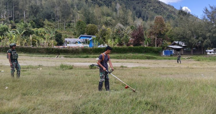 INTAN JAYA - Menjelang akhir tahun, Kampung Pogapa di Distrik Mugi, Kabupaten Intan Jaya, mulai merasakan semarak Natal. Namun, sebelum lantunan pujian terdengar, sebuah gerakan kebersihan yang penuh makna telah dilaksanakan. Personel Satgas Pamtas RI–PNG Mobile Yonif 113/Jaya Sakti (113/JS) dari Pos Pogapa tak segan turun tangan membantu panitia mempersiapkan dua lokasi krusial perayaan Natal dan Tahun Baru 2025/2026: landasan Bandara Pogapa dan area Gereja GKII Pogapa.