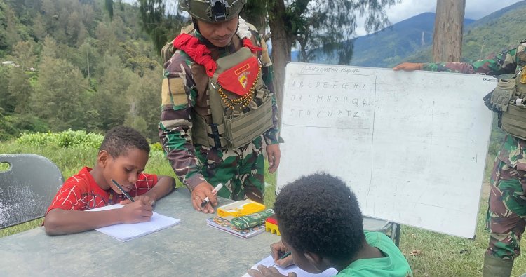 PUNCAK - Di tengah dinginnya kabut pegunungan Kampung Dangbet, Distrik Beoga, Kabupaten Puncak, Papua Tengah, sebuah cahaya baru mulai berpendar. Bukan dari gedung sekolah megah, melainkan dari pos penjagaan prajurit TNI yang disulap menjadi ruang kelas penuh harapan bagi anak-anak Papua. Di sana, para prajurit dari Satgas Pamtas RI–PNG Yonif 732/Banau, di bawah komando Sertu Yusran, mengambil peran sebagai pendidik, membuka pintu ilmu bagi generasi yang selama ini kesulitan mengaksesnya.