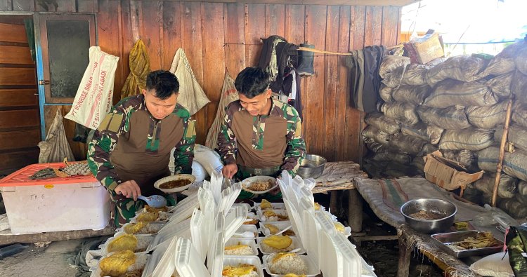 Sejak dini hari, suasana di dapur Pos Jampul begitu semarak. Puluhan kotak makanan yang berisi nasi hangat, lauk telur, mi, serta sayuran ditata rapi. Proses penyiapan ini merupakan cerminan semangat gotong royong para prajurit, yang menunjukkan bahwa pengabdian mereka melampaui sekadar tugas penjagaan, merambah ke ranah kepedulian sosial yang mendalam.