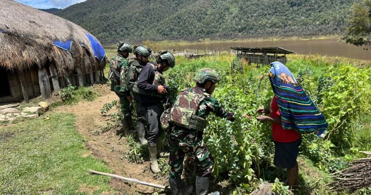 LANNY JAYA - Senyum merekah menghiasi wajah warga Kampung Goa Balim, Distrik Goa Balim, Kabupaten Lanny Jaya, Minggu (15/2/2026). Di tengah hamparan kebun yang subur, kehadiran prajurit Satgas Yonif 408/Sbh dari Pos Wamitu bukan hanya membawa rasa aman, tetapi juga kehangatan yang menyentuh hati. Mereka turun langsung ke ladang, berdialog, dan menyaksikan sendiri hasil kerja keras para petani.