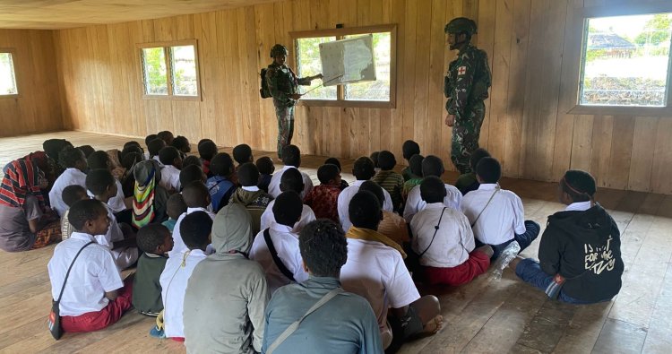 LANNY JAYA - Di pedalaman Kampung Andugume, Distrik Wano Barat, Kabupaten Lanny Jaya, Papua Pegunungan, suara tawa riang anak-anak kini menggema, mengisi ruang yang sebelumnya sunyi akibat terhentinya proses belajar mengajar. Situasi keamanan yang tak menentu tak lantas memadamkan semangat generasi penerus bangsa. Di sebuah ruang sederhana berlantai kayu, para prajurit Satgas Yonif 408/Sbh TK Andugume hadir bukan dengan senjata, melainkan dengan buku dan pena, menjadi pahlawan pendidikan bagi mereka.