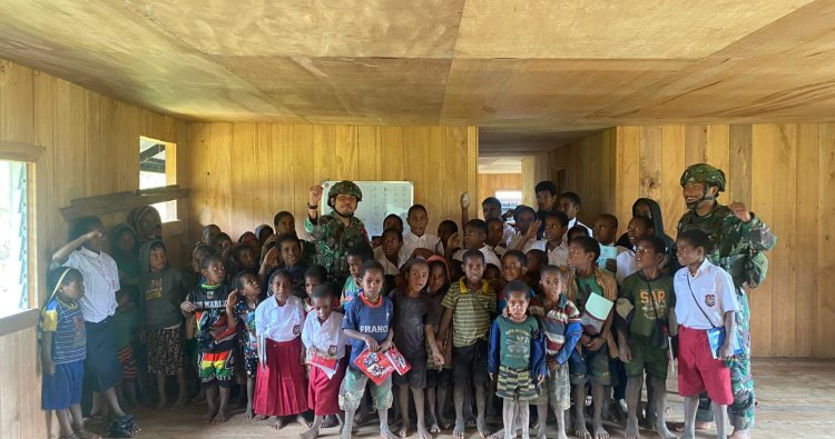 Di sebuah bangunan sederhana yang berdinding kayu, ruang kelas kembali hidup. Anak-anak duduk tertib, mata mereka berbinar penuh antusiasme menatap sosok-sosok baru yang hadir di tengah mereka. Papan tulis yang mungkin tak sempurna, menjadi saksi bisu bagaimana para prajurit dengan sabar membimbing langkah-langkah kecil dalam membaca, menulis, berhitung, hingga menanamkan rasa cinta tanah air. Meski fasilitas terbatas, kehangatan tulus terpancar dari setiap interaksi, menciptakan atmosfer belajar yang tak terlupakan.