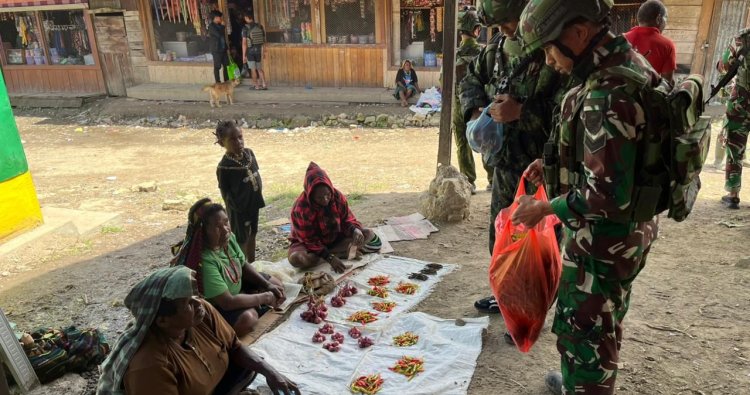 PUNCAK - Pasar Tradisional Sinak, Kabupaten Puncak, Papua Pegunungan, mendadak berdenyut lebih kencang. Semangat baru membuncah saat para prajurit dari Satgas Yonif 142/Ksatria Jaya (KJ) Pos Sinak Pasar turun tangan langsung. Melalui program pemberdayaan bertajuk “Ksatrata”, mereka tak hanya membeli, tetapi memborong hasil bumi masyarakat, sebuah langkah nyata untuk menguatkan ketahanan ekonomi di wilayah pegunungan yang seringkali dilupakan.