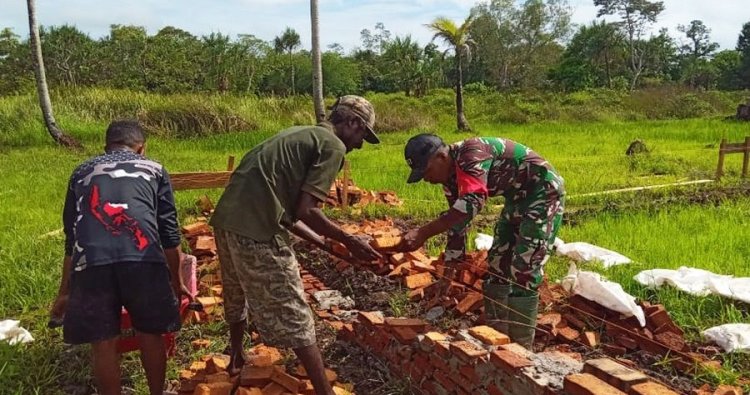 ”Kegiatan kerja bakti tersebut bertujuan membantu meringankan beban keluarga Bapak Felikus Kumuye dalam membangun rumah. Saat ini pembangunannya masih pada tahap pengecoran dan pemasangan batu bata sebagai pondasi”. ujar Kapten Inf Latupono.