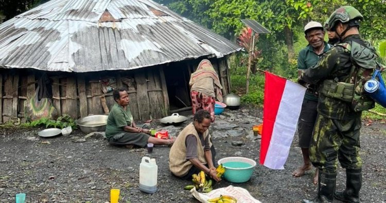 Para prajurit TNI tak segan memasuki honai, rumah adat yang menjadi saksi bisu kehidupan masyarakat asli Papua. Di sana, mereka duduk bersama, berbagi cerita, dan menikmati hidangan sederhana. Suasana kekeluargaan tercipta tanpa sekat, menunjukkan keakraban yang mendalam antara TNI dan warga.