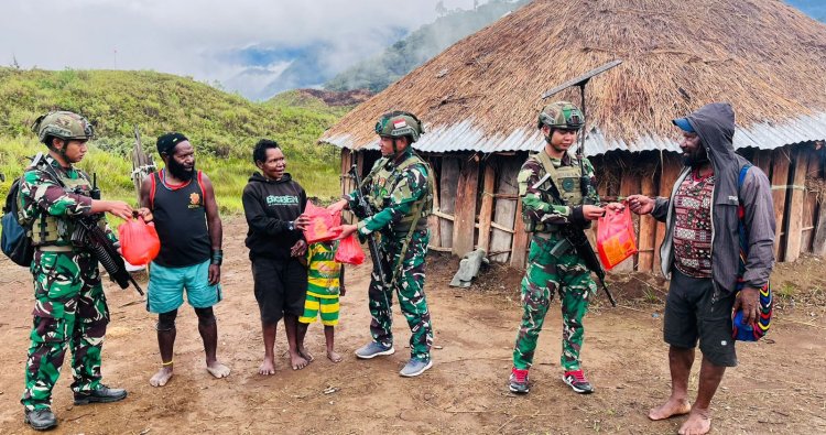 PUNCAK - Suasana kehangatan dan kebersamaan terasa kental di Kampung Wako, Distrik Gome, Kabupaten Puncak, Papua Tengah, ketika prajurit Satgas Yonif 700/Wira Yudha Cakti (WYC) melalui Pos Kout Koper melaksanakan kegiatan Safari Honai bersama masyarakat setempat, Selasa (28/10/2025).