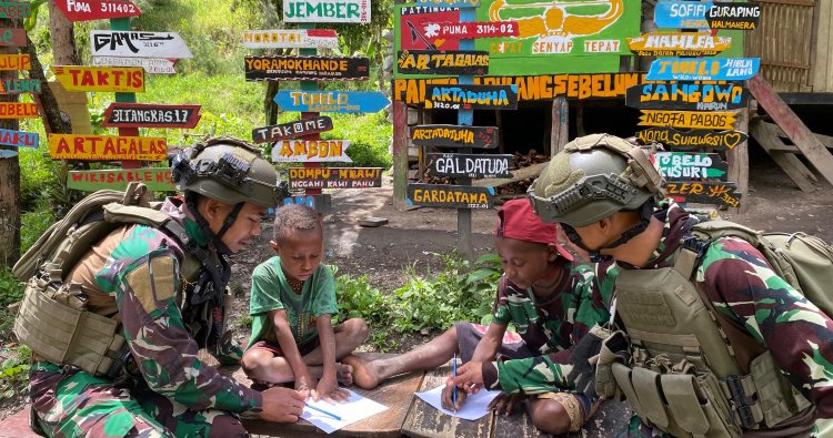PUNCAK - Di tengah hamparan pegunungan Papua yang memukau namun menyimpan tantangan, prajurit Satgas Pamtas RI–PNG Yonif 732/Banau tak hanya menjaga perbatasan, namun juga merajut asa lewat pendidikan. Di Kampung Jampul, Distrik Beoga, Kabupaten Puncak, Sabtu (21/2/2026), Pos Jampul menjelma menjadi ruang kelas dadakan yang penuh keceriaan.