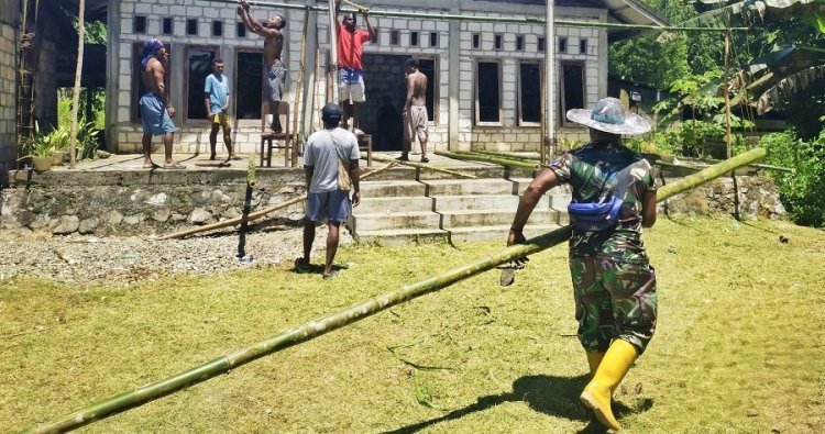 Sentani — Kepedulian aparat teritorial kembali terlihat dalam kehidupan sosial masyarakat. Babinsa Koramil 1701-14/Kemtuk Gresi, Serka Spenyel Wouw bersama Serka Roby, turut serta dalam kegiatan gotong royong di rumah duka almarhum Yan Pither Kiki (28), putra dari Kepala Suku Kiki, Bapak Yunus Kiki.